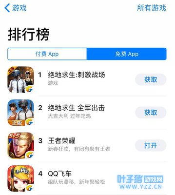 ios应用市场被腾讯霸屏,两款吃鸡手游力压2017年最火的王者荣耀,而《刺激战场》则领先《全军出击》一个身位。