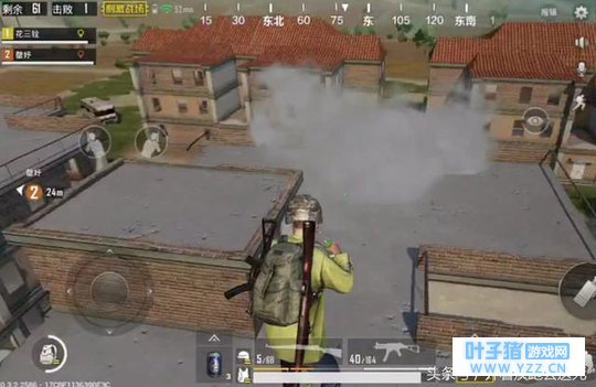最后一个是直接跳上3层房顶的BUG玩家在使用烟雾弹的时候,到最后一秒快结束的时候朝楼顶方向抛出去,随后玩家也会随着烟雾弹的抛物线来到房顶。