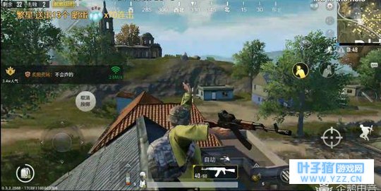 主播只要拿到98k基本都是吃鸡,千里爆头精准无比。而要是拿不到98k,则变成一个逗比搞笑的主播。看这图,主播P城房顶公然跳舞,还是使用卡BUG的舞蹈。扔手雷的瞬间切回枪就可以变成这个动作。而且各自自雷上房顶,都是非常常见的操作。