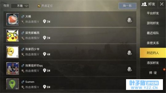 鸡友可以根据自己的当前位置,寻找附近的玩家,还可以查看附近的玩家距离,点击头像可以看到玩家个人资料,并且可以在附近的人界面快捷地添加好友来共同组队进行游戏。
