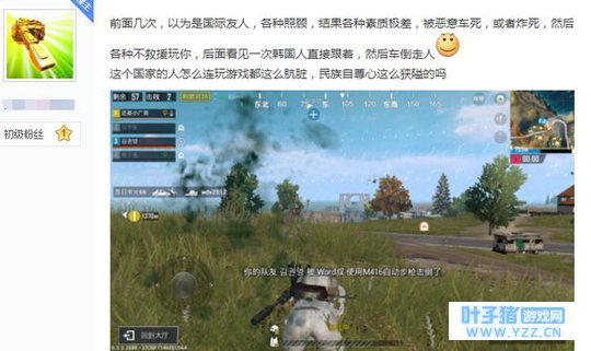 据贴吧玩家称,遇到几次韩国玩家,都是素质极差那种!拿车撞你,拿手雷炸你,然后就是不救你~或者救到一半就离开,对着你左右摇摆挑衅你等等!