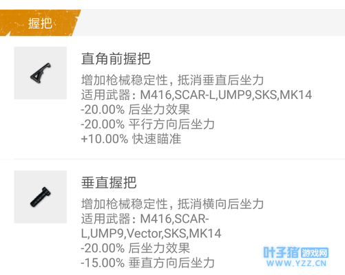 握把推荐直角前握把,毕竟是降低平行方向后坐力,子弹左右飘的现象就减少了很多,更方便轻松压枪