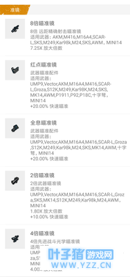 以下便是刺激战场官方给出的配件数据,本人也在此顺便谈谈对游戏的配件理解