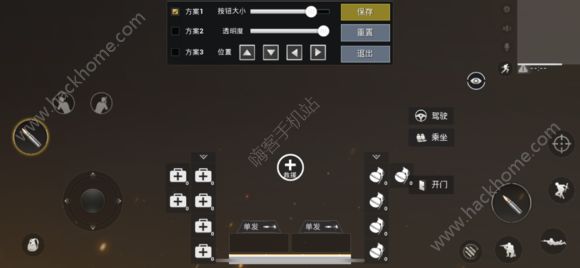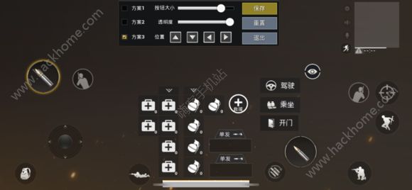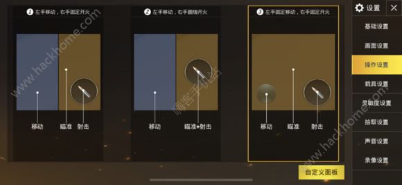 以上图1为操作设置,一共三种选项。 第一种:左手移动处不论手指点击哪里,人物都可以移动; 第二种:左手与第一种类似,只是右手变为跟随开火,3dtouch的原理是当你重压屏幕时,手中的武器会进行射击,就跟端游使用鼠标一样,非常好操作。然而问题来了,虽然操作方法非常简便,但有的玩家会经常走火(开始用的时候会经常经常走火,有时候都会吓自己一大跳),这是因为按压太过用力造成的,移动准心的时候轻一点就行了。 第三种:左手固定移动,右手固定开火,这个就没什么好说的了。最为常规的设置,楼楼就使用这种。 当您按照图1选择好三种操作设置之后,图1右下角黄字“自定义设置”,点击之后,就可以设置我们具体操作界面了。