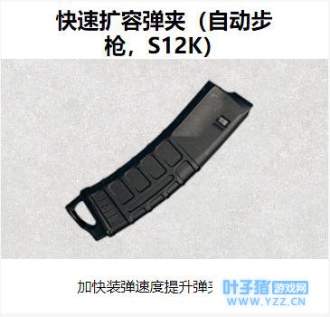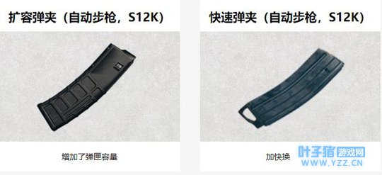 在这里小编推荐大家除了SCAR-L小黄枪用直角前握把之外其他能装握把的自动步枪全用垂直握把,因为SCAR-L这把枪不仅垂直后坐力明显,而且左右后坐力也比较明显,用直角前握把手感会更好。 枪托 目前自动步枪中只有M416能够使用枪托,所以没什么好纠结,同时小编也建议大家在看到M416这把枪之后一定要捡起来,因为这把枪在满配的情况下非常好用,后坐力极低。 弹匣 自动步枪弹匣有快速扩容弹匣、快速弹匣、扩容弹匣三种,以下是它们的外观和介绍。