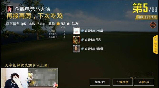 不断的有小队往房间中移动,最后随着马大哈三个队友的扑街,这波吃鸡之路也就此终结了。最后,马大哈的队伍,只得到了第五名而已,还是一个让人觉得有点可惜的排名。