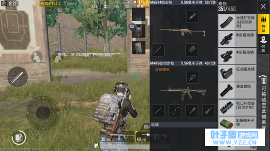 下(M416)上(mini) M416是5.56系列比较吃配件的武器,拥有五配件槽,可安装所有步木仓枪口,弹匣,两种握把,维克托通用的枪托,瞄具可安装基本镜到八倍镜,初始单弹匣30发,安装扩容弹匣为40发,M4是很具有魅力的一把武器,在满配后,其稳定性大幅度上升。