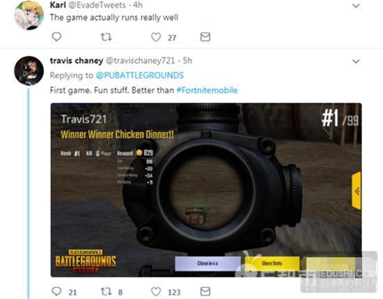 一些美国玩家试玩后给出不错的评价,表示游戏体验良好,并晒出了最后吃鸡图。