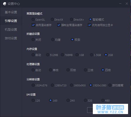 设置中心 这时候需要我们一个个来设置配置哦 基本设置可以不用管 1、引擎设置