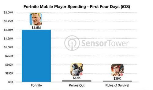 据数据分析公司Sensor Tower透露,《堡垒之夜》手游在iOS平台限定测试(需要邀请)的前提下,已登顶多国的iOS下载榜,前4天累计流水已达150万美元,足可见这个PC端游IP移植的成功。
