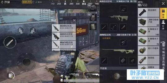 至于细节表现上,《绝地求生:刺激战场》表现同样非常优秀,远处的树木、地上的草丛、墙上的弹孔以及瞄准镜等各类枪支的配件都是实打实的模型打造,并不是《绝地求生:全军出击》那样通过简单贴图处理,显得更为真实一些,让玩家体验到原汁原味的端游品质。另外,《绝地求生:刺激战场》的枪战特效也更加丰富,不同的单位在中弹之后会产生不同的视觉效果,比如平底锅中弹之后会火星四溅,而草坪中弹了则会弹起沙土,细节表现十分丰富。 游戏装备对比记得春季试炼版本更新之前,《绝地求生:全军出击》在装备方面并没有做到全面还原端游,缺少了部分装备,比如弓弩、AUG、DP-28以及三轮摩托车,同时在枪械细节上,它也没有像《绝地求生:刺激战场》那样做到面面俱到。 大多数武器并没有机瞄功能,而是通过自带的全息瞄准镜代替;开枪射击后,子弹也并不会有飞行时间和子弹下坠,这样虽然一方面降低了新手玩家的入手难度,但另一方面也一定程度上削弱了游戏的整体趣味性。似乎是听到许多玩家的强烈呼声后,《绝地求生:全军出击》在春季试炼版本中加入了上面所缺失的机制,同时也对其他细节进行了优化处理。因此,在春季试炼版本更新后,《绝地求生:刺激战场》拥有的机制,《绝地求生:全军出击》基本也会拥有,两款游戏的装备差别主要体现在枪械特性上。