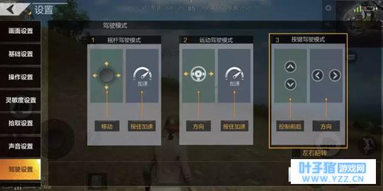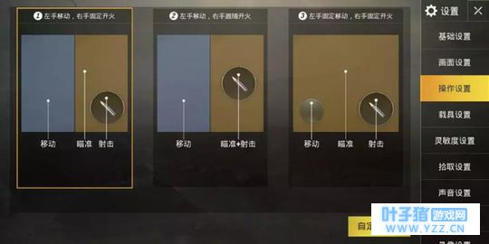 因此,玩家在射击时对于瞄准提前量的追加十分重要,这不仅要考验玩家的操作手法,更极大地提升了战斗部分的可玩性。载具物理方面,《绝地求生:刺激战场》的驾驶手感也与端游十分接近,尽管操作方式大不相同,但车辆的碰撞反馈,操作惯性以及地形起伏带来的波动等都还原的十分到位,对于端游老玩家来说几乎无需熟悉就可以直接上手,而对于新玩家来说,简单的四个按钮也能很快适应,着实无愧于“正版吃鸡”的名号。 操控按键设置对比将FPS游戏完美地移植到手机上本身就是一个伪命题,更何况像《绝地求生:大逃杀》这种远、中、近三种距离都有三种完全不同射击体验的游戏。尽管各大游戏厂商费尽心思开发出各种操作模式以减缓这种不流畅感,但似乎都不尽人意。因此,在按键设置上这2款官方吃鸡手游相比之前我们对比过的4款吃鸡手游都没有太大的区别,变化的仅仅是在具体按键位置上有所改变。 在操作设置界面上,《绝地求生:全军出击》预设有3种操作模式,玩家可以根据自身的操作习惯选择适合自己的模式,并且玩家还可以自定义按键面板,自由调整各个按键的具体位置、按键大小以及按键的透明度。为了让玩家在射击时更加得心应手,提高瞄准精度,游戏中还增加了多种辅助功能,如左手射击、辅助瞄准、侧身射击、自动拾取、自动开门、灵敏度调节以及陀螺仪等。