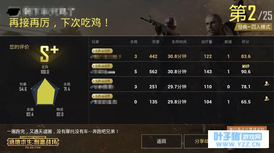 本来想要放弃准备洗洗睡的时候,开黑的小伙伴说再来一局,最后一局哦,打完睡觉。终于在这一局找到了男人的快感,吃鸡了,鸡动呀,兴奋呀,一下子到高潮,这会反而睡不着了。在此我总结出一个绝招就是想吃鸡就要坚持到底,死缠烂打,女神都可以泡到。各位鸡友,祝你们吃鸡大吉大利!