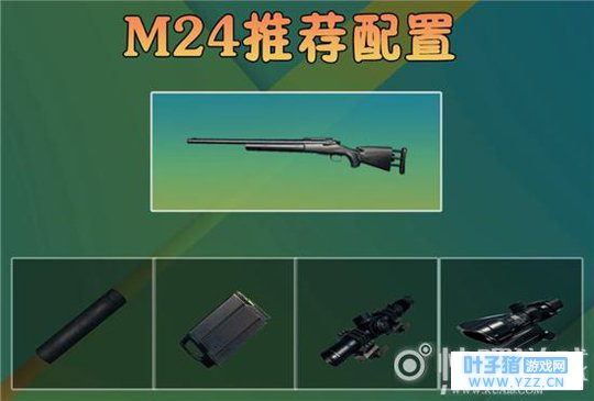 M24可装配的配件有枪口、弹夹、枪托、瞄具。枪口支持补偿器、消焰器、消音器;弹夹支持快速弹夹、扩容弹夹、快速扩容弹夹;枪托支持托腮板;瞄具支持红点或全息、二倍镜、四倍镜、八倍镜。 关键配件推荐:消音器、快速扩容、八倍镜或四倍镜。