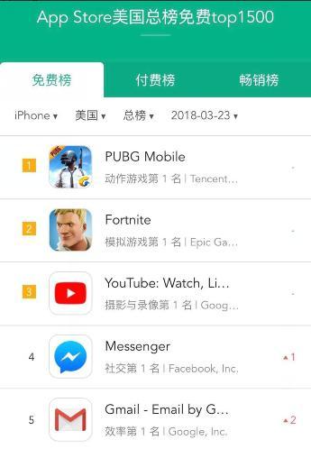 绝地求生刺激战场火爆美国! 超越美国最火手游堡垒之夜拿下第一!