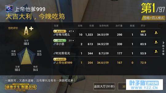 《绝地求生.刺激战场》一个纯手机玩家的成绩