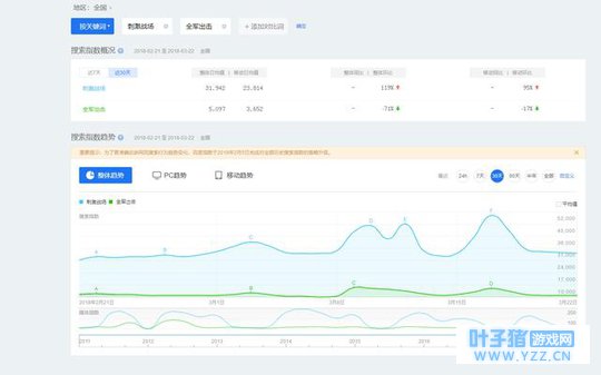全军出击和刺激战场作为腾讯旗下2款工作室各自推出的吃鸡正版手游,推出后点燃了手游玩家的吃鸡热情。 但是经过一个月的沉淀,刺激战场和全军出击究竟如何了呢,一山不能容二虎,市场给出了最终的答案。 根据最近30天的百度指数,如下所示:
