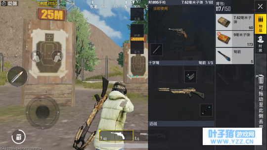 上(R1895)下(十字弩) R1895使用7.62mm子弹,只能安装消音器,而且射速较慢,换弹速度更慢,坑爹的单发上弹害死了我无数次,然后,我还是继续在捡。。。。(=´口`=)。因为它有强劲的威力,一级头是一发解决的事情。但是后坐力比较大 ,慢射速给了我们喘息的机会,乘机压枪(其实也没什么好压的,比较稳。)