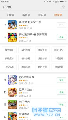 小米应用市场方面则具有天翻地覆的变化,除了刺激战场盎依旧第一外,荒野行动和荒岛特训都超越了刺激战场,小米市场作为主流的市场之一,这榜单还是具有一定分量的,全军出击则滑落到吃鸡类的第四,总榜第七的位置。 说完小米,再说下酷安,酷安做为一个良心开放性APP市场,数据一向比较真实可靠,我们看看酷安的情况如何呢。