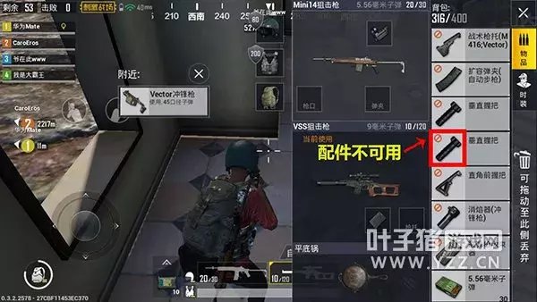而游戏中物品拾取方面,《刺激战场》会优先显示枪械、配件等,子弹、药品次之,同时自动安装已有配件,不能使用的配件也有禁用标志。这些新手一目了然的特性都值得肯定。