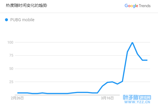 根据国外的Google Trends搜索热度显示,在过去30天内,PUBG mobile的搜索热度也上涨了几十倍。