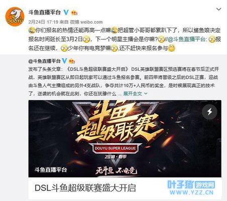 并且此次斗鱼超级联赛,不仅仅是职业选手的舞台,还是各位游戏大神和游戏主播的对抗,报名阶段由于人数火爆所以时间还曾经延长了几天。此前斗鱼有数十亿的主播星计划的蓝图,此次在受到腾讯数十亿的投资之后,大手笔办了一个全民电竞的舞台狂欢,不仅仅是为了流量和眼球,还有从中挖掘下一个游戏明星主播的意思。毕竟在这么多观众面前亮相的机会不多,如果能取得好成绩更是会圈粉不少的。 |