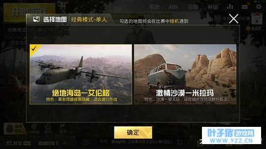 更新游戏后,原来的登陆界面已经发生改变,变成沙漠地图的封面。在进入游戏,玩家可以选择绝地海岛地图——艾伦格和激情沙漠地图——米拉马。