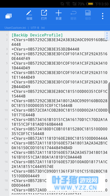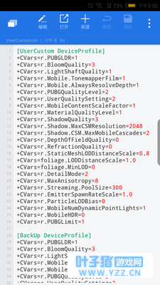 红线下面(详看第一期专栏) 第六步:复制以下代码 [UserCustom DeviceProfile] +CVars=0B57292C3B3E280C1815100D00351C0F1C15444A +CVars=0B57292C3B3E3418012A0C0909160B0D280C1815100D00351C0F1C15444B +CVars=0B572C0A1C0B280C1815100D002A1C0D0D10171E444B +CVars=0B57292C3B3E353D2B4448 +CVars=0B57292C3B3E342A38382A0C0909160B0D4448 +CVars=0B57292C3B3E3D1C0F101A1C2C091D180D1C3F15181E4449 +CVars=0B57292C3B3E3D1C0F101A1C3F292A35160E444F49 +CVars=0B57292C3B3E3D1C0F101A1C3F292A34101D444F49 +CVars=0B57292C3B3E3D1C0F101A1C3F292A31101E11444F49 +CVars=0B57292C3B3E3D1C0F101A1C3F292A313D2B444F49 +CVars=0B57292C3B3E3A2B352B0C170D14101C341017341C14444B574C +CVars=0B57292C3B3E2B1C171D1C0B2A0E100D1A114448 +CVars=0B572A11181D160E280C1815100D004448 +CVars=0B5734161B10151C3A16170D1C170D2A1A18151C3F181A0D160B4448 +CVars=0B572D181E3A0C151510171E2A0C0909160B0D4448 +CVars=0B5734161B10151C313D2B4448 +CVars=0B5734161B10151C572A1A1C171C3A1615160B3F160B14180D44495749 +CVars=0B572C0A1C0B313D2B2A1C0D0D10171E444D +CVars=0B57383A3C2A2A0D00151C444D +CVars=0B572C0A1C0B342A38382A1C0D0D10171E4448 +CVars=0B573D1C1F180C150D3F1C180D0C0B1C5738170D10381510180A10171E44495749 +CVars=0B5734161B10151C342A383844485749 +CVars=0B57342A38383A160C170D444D5749 +CVars=0B5738171D0B16101D573D100A181B151C36091C173E353C2A4A482A0C0909160B0D4448 +CVars=0B572D1C010D0C0B1C2A0D0B1C181410171E4449 +CVars=0B5734161B10151C573C180B15002329180A0A4449 +CVars=0B5734180D1C0B101815280C1815100D00351C0F1C154448 +CVars=0B572A11181D160E573418013A2A342B1C0A16150C0D101617444C484B +CVars=0B572A11181D160E573A2A345734180134161B10151C3A180A1A181D1C0A444B +CVars=0B572A11181D160E573D100A0D18171A1C2A1A18151C4449574F +CVars=0B573D1C090D11361F3F101C151D280C1815100D004449 +CVars=0B572B1C1F0B181A0D101617280C1815100D004449 +CVars=0B572A0D180D101A341C0A1135363D3D100A0D18171A1C2A1A18151C4448574A +CVars=1F161510181E1C5735363D3D100A0D18171A1C2A1A18151C44495741 +CVars=1F161510181E1C5734101735363D4449 +CVars=0B573D1C0D18101534161D1C4448 +CVars=0B573418013817100A160D0B1609004448 +CVars=0B572A0D0B1C181410171E57291616152A10031C444A4949 +CVars=0B573C14100D0D1C0B2A09180E172B180D1C2A1A18151C4449574E4C +CVars=0B5729180B0D101A151C35363D3B10180A4449 +CVars=0B5734161B10151C370C143D00171814101A291610170D35101E110D0A4449 +CVars=0B57292C3B3E2F1C0B0A101617444A 第七步:从你刚才删的[User]带头的粘贴上去 第八步:ojbk |