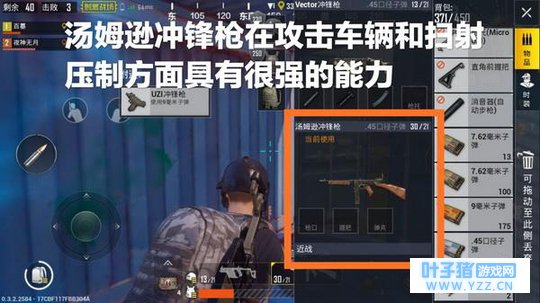 ♦突出特点:整体性能平均,无个别参数短板的现象。 ♦性能数据:非头部裸伤35,头部裸伤88,子弹口径9mm,射速0.092s,容量30(40)。 ♦配件:枪口:冲锋枪消音器/冲锋枪补偿器/冲锋枪消焰器,握把:垂直握把/直角前握把,弹夹:冲锋枪快速弹夹/冲锋枪扩容弹夹/冲锋枪快速扩容弹夹,倍镜:红点瞄准镜/全息瞄准镜/二倍镜/四倍镜。 ♦枪支对比:UMP9冲锋枪不像UZI冲锋枪那样后坐力极大,也不像Vector冲锋枪那样基础弹容量极低,冲锋枪中各项性能指标最为平均,无个别短板也相对比较常见,是冲锋枪中最推荐的一款,能很好的适用于中距离战斗,弹容量参数方面十分可观,这也造就了该枪在冲锋枪中容错率最高的优点,稳定性适中还能安装倍镜,可以完成适当距离的瞄头攻击,射击为单点或三连射制式,实用性极强。 ☑【载具天敌:汤姆逊冲锋枪】 实用性能:★☆☆☆☆ 获取难度:★★★★☆ 配件要求:★★★☆☆ 操作要求:★☆☆☆☆