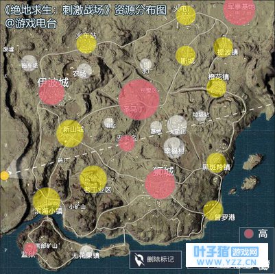 一图看懂《绝地求生: 刺激战场》资源分布, 知道往哪里跳伞了吧?