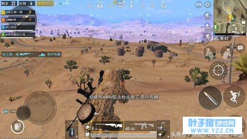 说到沙漠地图的狙击枪优势,那就不得不提到沙漠地图的特征了。众所周知 “绝命海岛”中掩体甚多,山地多树,平原多草,即便是在平原的麦田中,玩家都能扮演“伏地魔”来获得隐蔽的优势。而在沙漠地图中,以上这些特征基本都不存在。有小树,草更少,想要借助还树来规避敌人伤害基本没有可能,因为树比人还细。想要借助草来作掩护,基本也没有可能,因为光秃秃的沙漠只有星星点点的草,伏地不存在的,只要你不怕被山上的98K爆头就好。 地形利用 “激情沙漠”与“绝命海岛”最大的差异就在于卡位方式和射击模式的变动,尤其是狙击枪的打法。在沙漠地图中狙击敌人可分为两种情况,有实质性掩体,和无实质性掩体。有掩体就不说了,而没有掩体那我们就要“假装”有掩体。