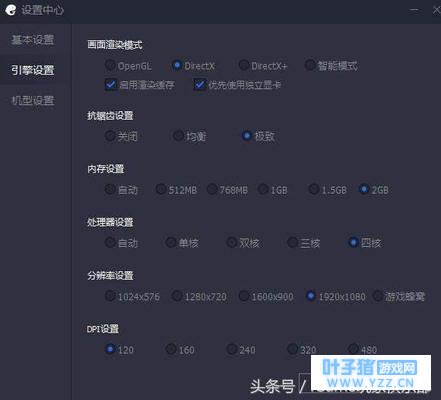雷电模拟器 同时这两款模拟器都可以进行分辨率、CPU核心数和内存的大小的设置。