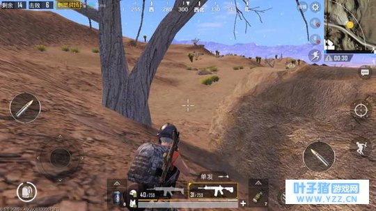 沙漠地形中,山丘、洼地、沟壑密集,并不是表面看上去的那么一片坦途。如果在跑毒的时候从比较高的岩石上跌落,还会直接半血。不过,地形上的差异也并非只有坏处,起伏不平的地形实际上可以带来非常好的掩护效果——各种坑洼的斜坡、小山巨石,玩家可以巧妙运用地形给自己的战斗增加更多策略选择,充分利用地形优势进行狙击。