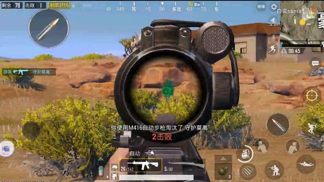 4倍镜AK 从图中可以看出,无论是机瞄还是镜瞄,AK在游戏中还是有较明显的枪口抖动,子弹会不规律的散射,但后坐力不如端游,子弹回正的位置也离瞄准点较近,但这样是合理的,如果手游有着端游的后坐力,相信没人能控住枪。