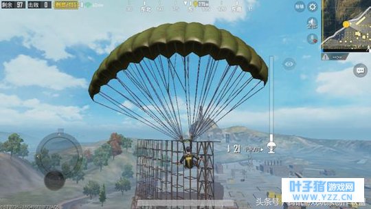 二、在适合的时候开伞 玩家在跳伞过程中无需等待降落伞自动开放,大致算好自身与目标点的距离后即可开伞。如果在开伞前,玩家与目标点还有很长的一段距离。这时玩家就要开启降落伞,然后慢悠悠地荡向目的地。玩家通过一前一后的摆动,犹如荡秋千一样,向目标点逐步靠近。在此过程中,角度仍旧不可忽略,玩家依旧要保持与地面处于平行状态。虽然这样的降落方式较慢,但是其可以增加滞空时间与滑行距离,玩家要有耐心地向前移动,飘落至丰富的资源区后,拾取的装备资源将会让玩家喜笑颜开。