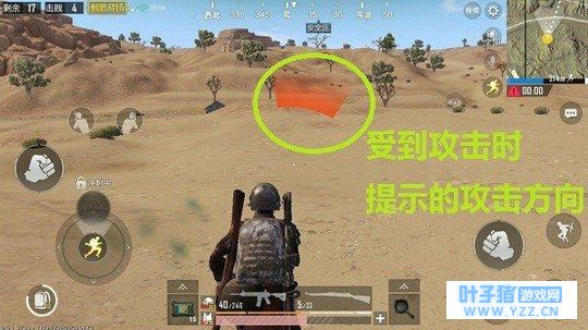 而最直观判断敌人有俩个方法,一个是看右上角的雷达地图,另一个是看我们的受伤提示! 当我们附近有敌人开火,那么右边的雷达地图就会显示提示音,提醒我们周围有人。但是这个提示音有一个诟病,那就是只能警戒我们附近的声音,如果是在较远的地方则不会提醒。 但是受伤提示就不一样了,受伤提示会根据子弹射击来的方向提醒,但是大家反应要快,因为受伤提示出现的快,消失的也快,我们要一瞬间迅速判断好敌人所在方位。