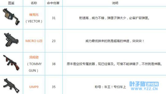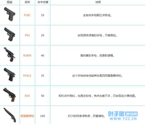 手枪: 手枪这种枪在后期基本上没有作用的,一般都是前期没有捡到枪,随便拿把手枪就和别人刚枪了,后期基本就可以丢掉了。