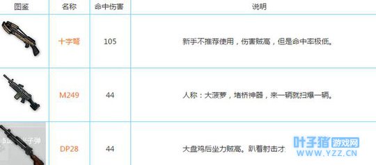 绝地求生:刺激战场枪械装备以及伤害