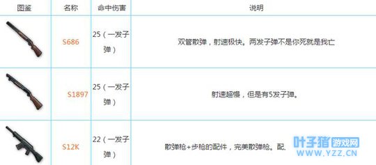 散弹枪: 散弹枪又名喷子,大家在阴人或者近距离作战的神器,如果子弹全部命中,一发就可以杀死敌人,不过玩法比较难,杀一把雾天和前期作战的神器。