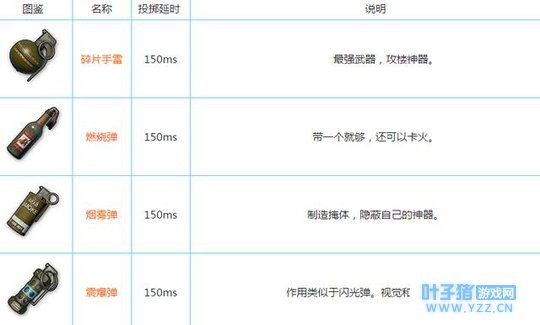 投掷武器: 手雷是敌我僵持的情况下使用的,小编就特别喜欢带碎片手雷,就是手榴弹了,一定要带上。有多少带多少,当一个炸弹人是很爽的。