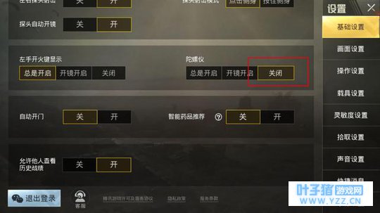 3、陀螺仪默认是关闭的,建议不要打开,开镜时它会随手机的倾斜幅度自动调整准星。如下图: