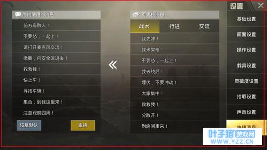 7.局内消息选项设置,把经常用的消息放到里面,在不开麦的情况下就可以使用局内消息与队友交流了。如下图: