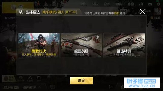 娱乐模式——刺激对决 更刺激的钢枪对战来啦!新版本中,娱乐模式新增了刺激对决模式,玩法和经典模式一致,同样是百人进入游戏。 但是开场毒圈范围更小(4X4),可拾取物资更加丰富,玩家密度骤增,哇,有木有感觉非常刺激啊! 不喜欢苟到最后,只追求速战速决!刺激对决模式,一定符合你的口味!