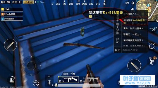 快捷信息标记功能快捷语音指令中新添加了三个指令,分别是“前方有危险”,“这里有物资”和“集合到我这里来”。 如图,你瞄准 98k点击这里有物资,就会向队友发出“这里有Kar 98k”的提示。 这点就很方便了,不用在麦里喊“这里有个三级甲”“在哪里”“这里啊,我标记的这里”“看不到啊哥”“还是我带你去吧”偶尔都会被以上的对话折磨,有时候自我标记并没什么用,因为队友还是会找不到,简直吐血啊!