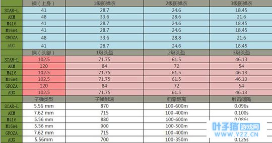 从图中数据可以看出,自动步枪基本打裸体爆头就是一枪。子弹方面只有AKM,GROZA是采用7.62MM子弹。 2. 各枪械数据分析: