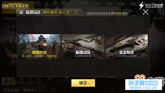 全新娱乐模式——刺激对决 想体验快节奏的爽快枪战?想把把落地满配M4?《绝地求生:刺激战场》手游推出全新娱乐模式——刺激对决,更小的开场毒圈范围、更丰富的物资、更密集的玩家分布,让喜欢刚枪的玩家体验激爽战斗!新娱乐模式同样将采用百人游戏制,但开场毒圈范围仅为原来面积的四分之一,同时物资刷新上调了很多,玩家很快就可以搜索到精良的装备,投入战斗。如果你厌倦了前期的搜索,你想与敌人来一场硬碰硬的较量,全新娱乐模式——刺激对决将成为你的不二之选!