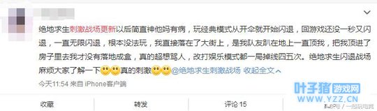 iPhone6更新《绝地求生刺激战场》新版本疯狂闪退 玩家气愤卸游! 所以不少玩家觉得,在升级和卸游之间,果断选择卸游啊。