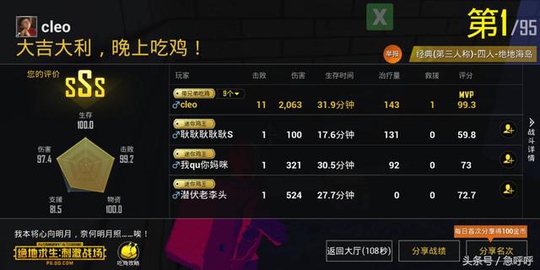 绝地求生刺激战场手游外挂又出现,神仙恐怖吃鸡战绩十连鸡