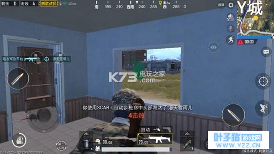 Kar98k狙击枪的伤害和精准度相比于前两种狙击枪略逊一筹,持有该枪的玩家不适合前线作战,其应该负责队伍后方,充当指挥位兼医疗兵。选择一个可清楚看到三名队友的位置,随时调度每名队友行动。队友倒下后,要立刻前往救援,并安排另外两名队友火力压制敌人。这名玩家还需要时刻注意是否有敌人抄后,解决队伍的后患之忧。 第四名玩家应选择两把手枪,并装配较多的投掷物,作为队伍的突击手。近距离发现敌人时,该玩家要当仁不让,冲在队伍的最前方。远距离作战时,该玩家要悄无声息地摸到敌人后方,使用手枪贴身击杀敌方狙击手。 二、狙击枪玩法