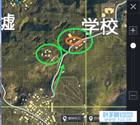 这两个野区物资也还可以,重点是橙圈那两个屋子的屋顶,上去之后基本整个平原都看得到,狙击手可以考虑上去,讲到这里就不再深入了,毕竟再继续下去就超出城范围太多了。